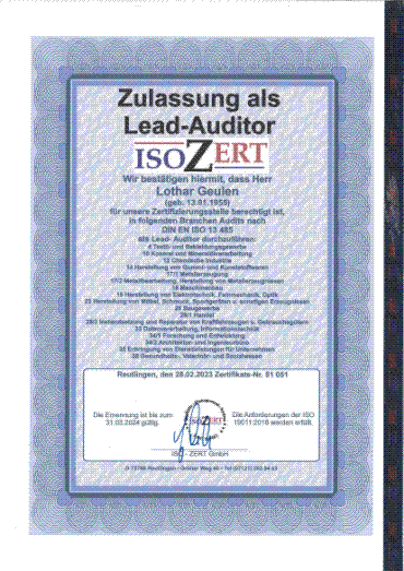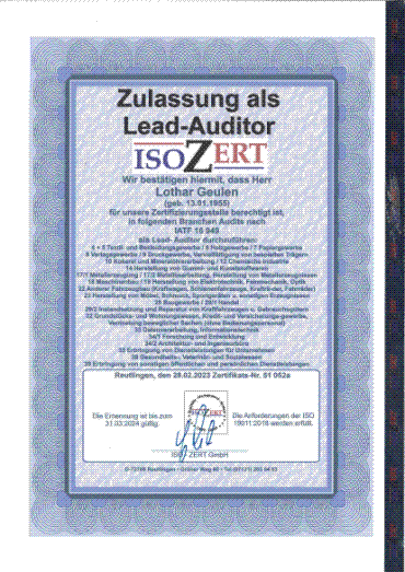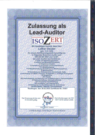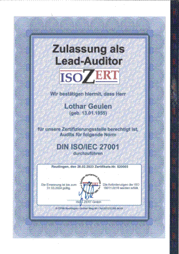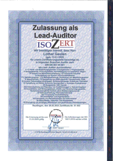 Bitte senden Sie zur Kontaktaufnahme eine E-Mail an Lothar Geulen. Er wird Ihre Anfrage umgehend bearbeiten und antworten.